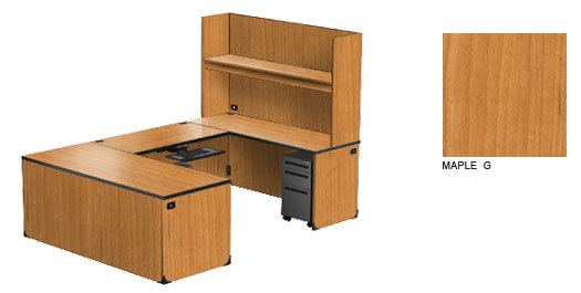 - Pedestal desk has locking file drawer with adaptable rails for letter and legal filing